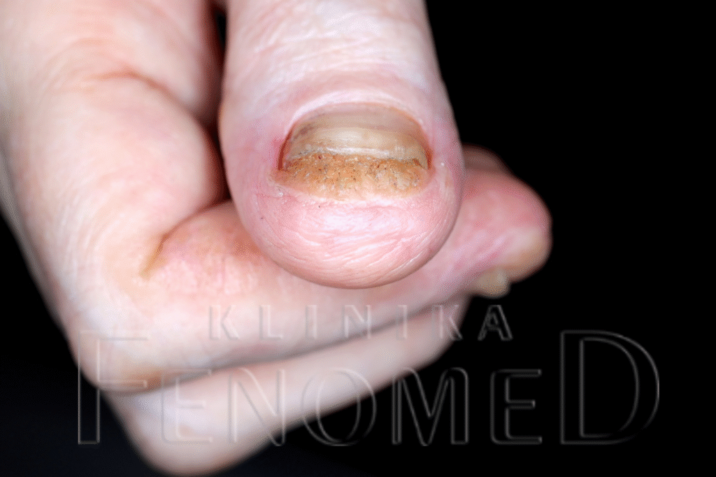 Alergia kontaktowa na alergen zawarty w lakierze hybrydowym.