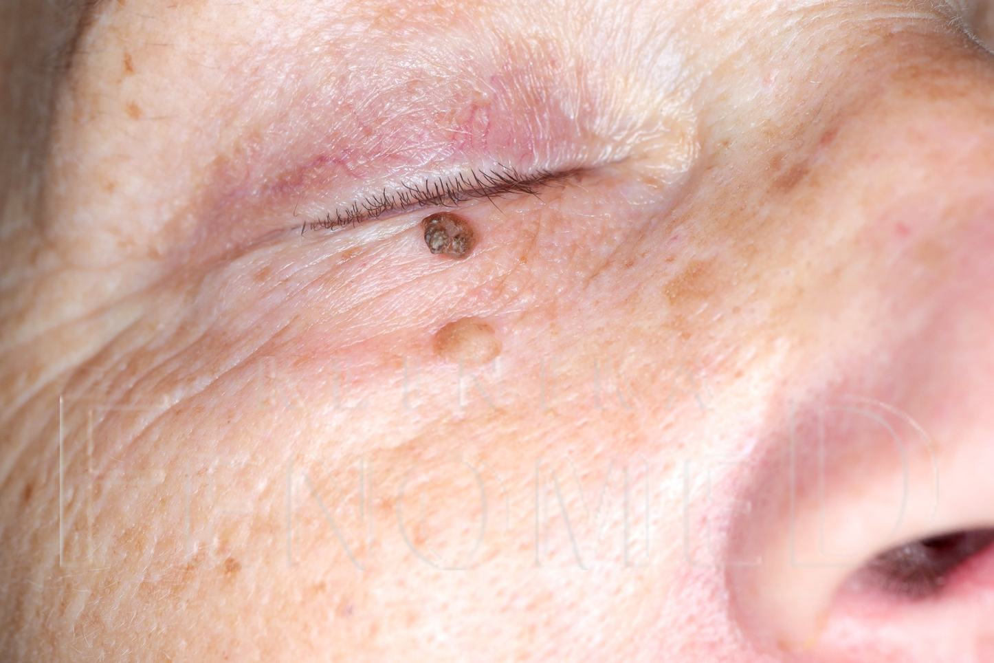 Brodawki łojotokowe na skórze okolicy podoczodołowej