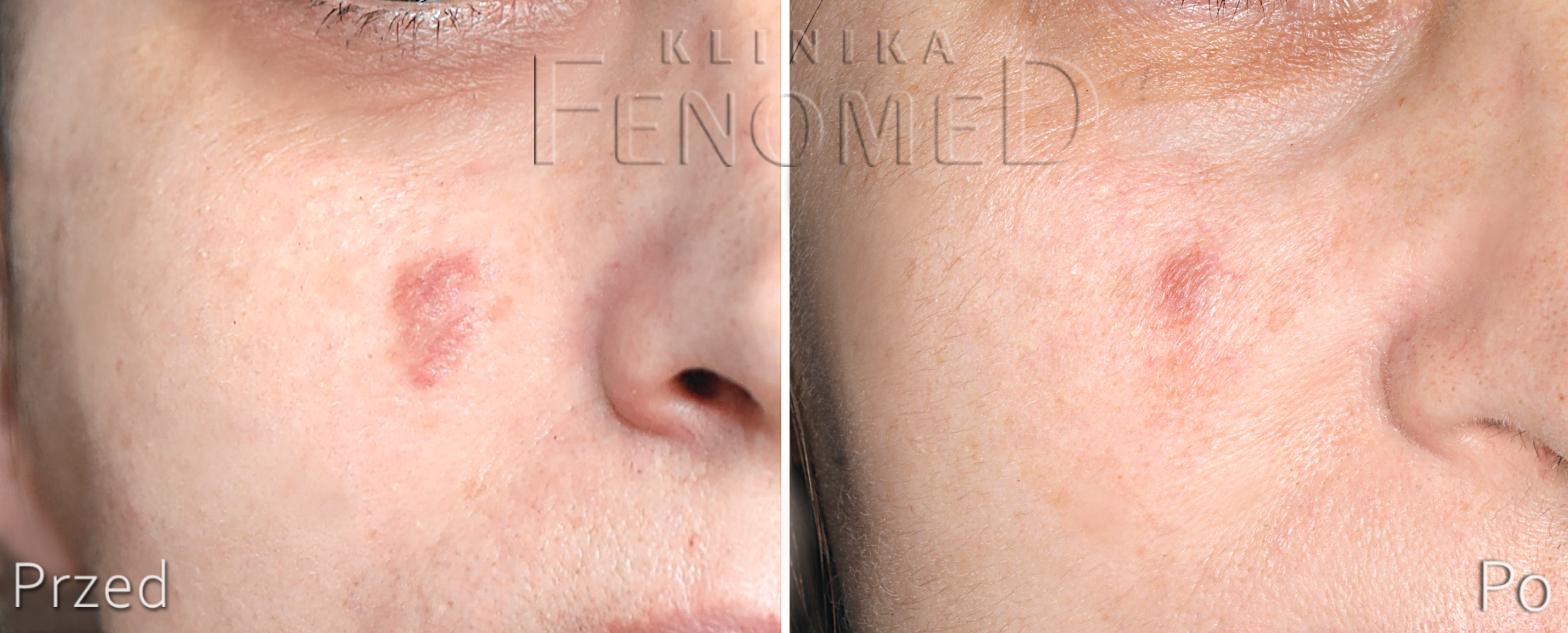 Ziarniniak twarzy przed i w trakcie leczenia.