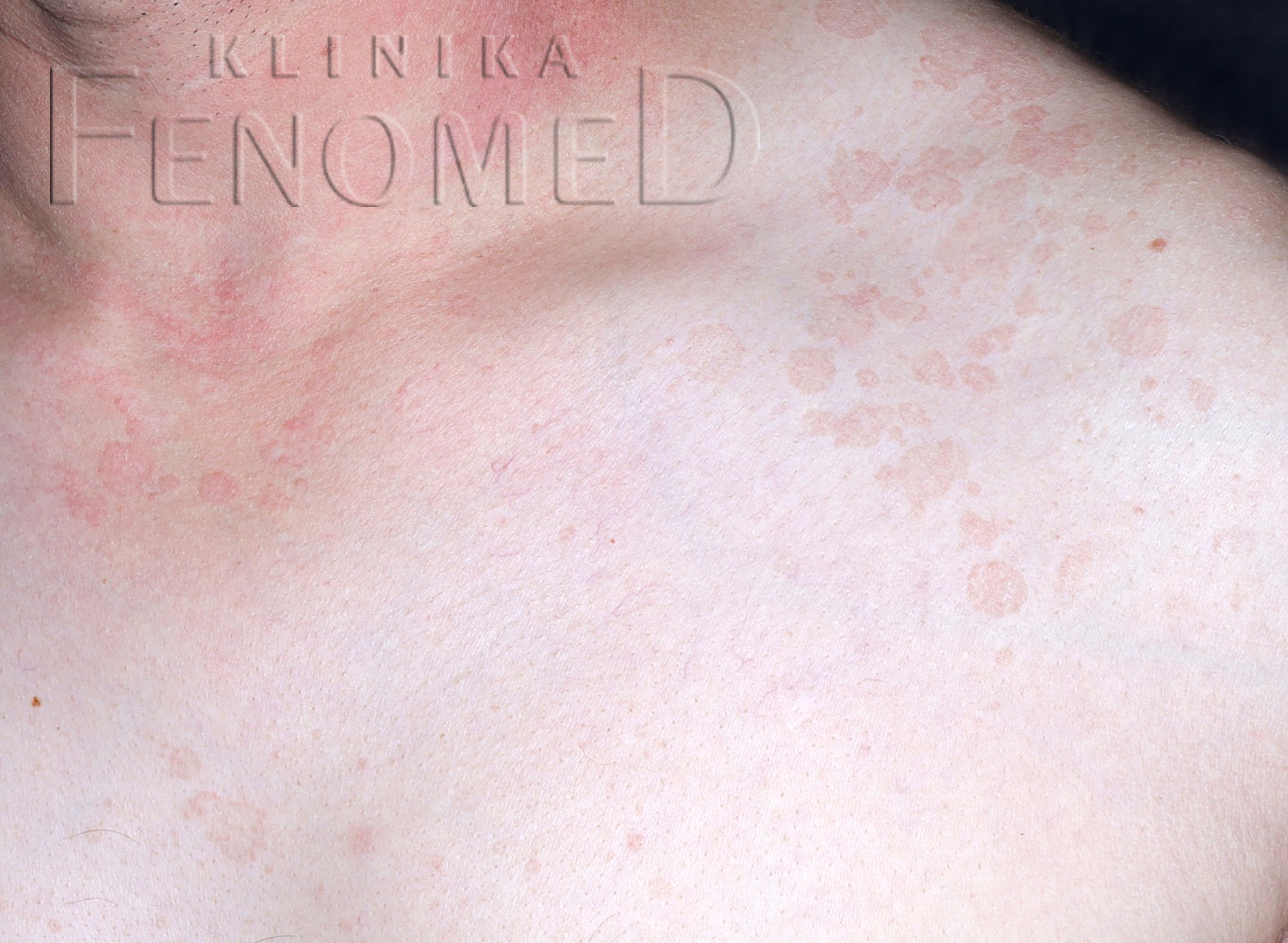 Łupież pstry zlokalizowany na skórze klatki piersiowej