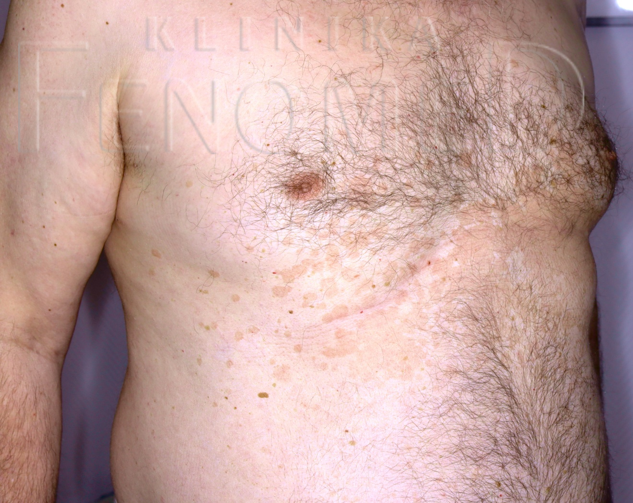 Łupież pstry zlokalizowany na przedniej powierzchni klatki piersiowej