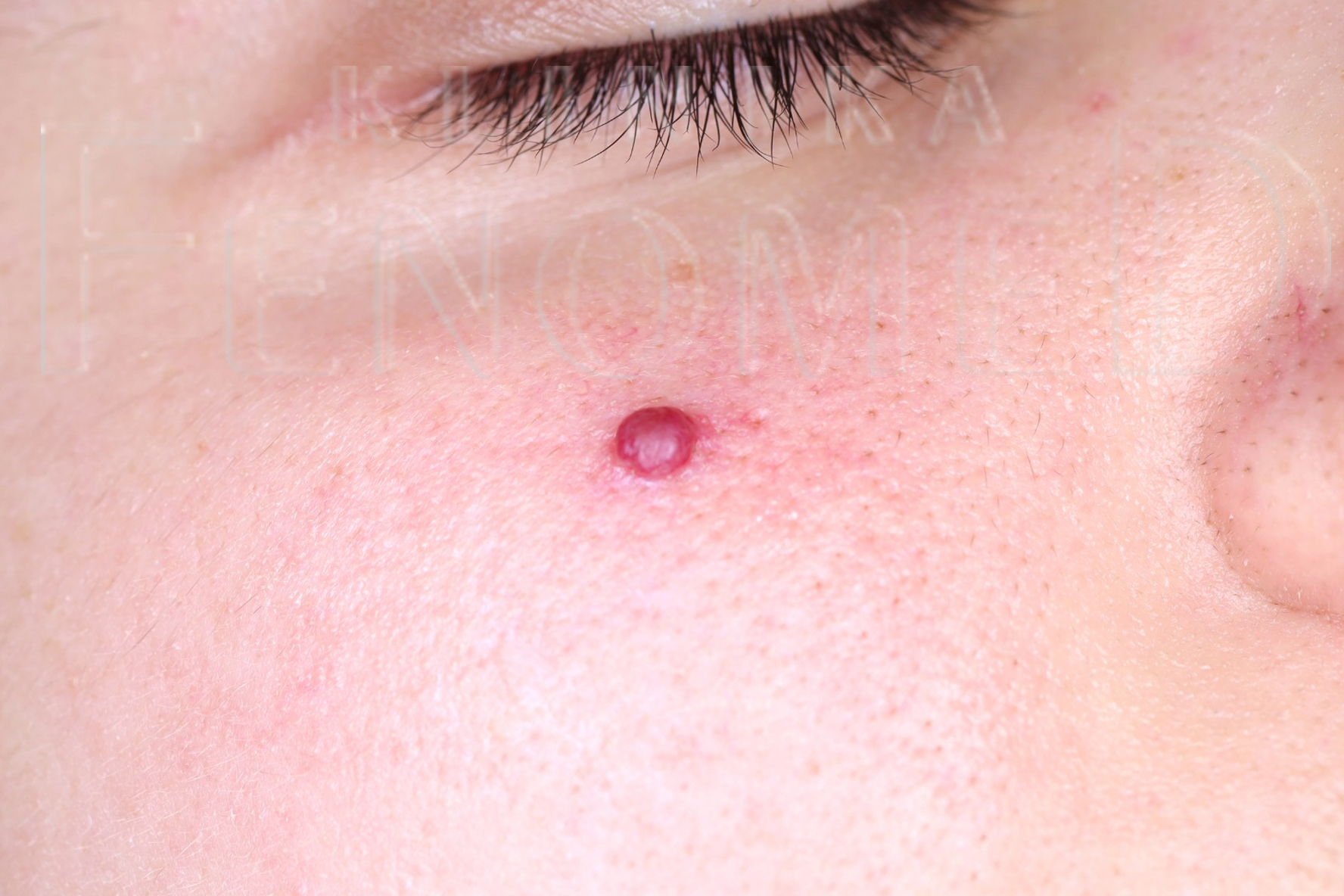 Ziarniniak naczyniowy na wardze górnej. Stan przed i bezpośrednio po zabiegu.