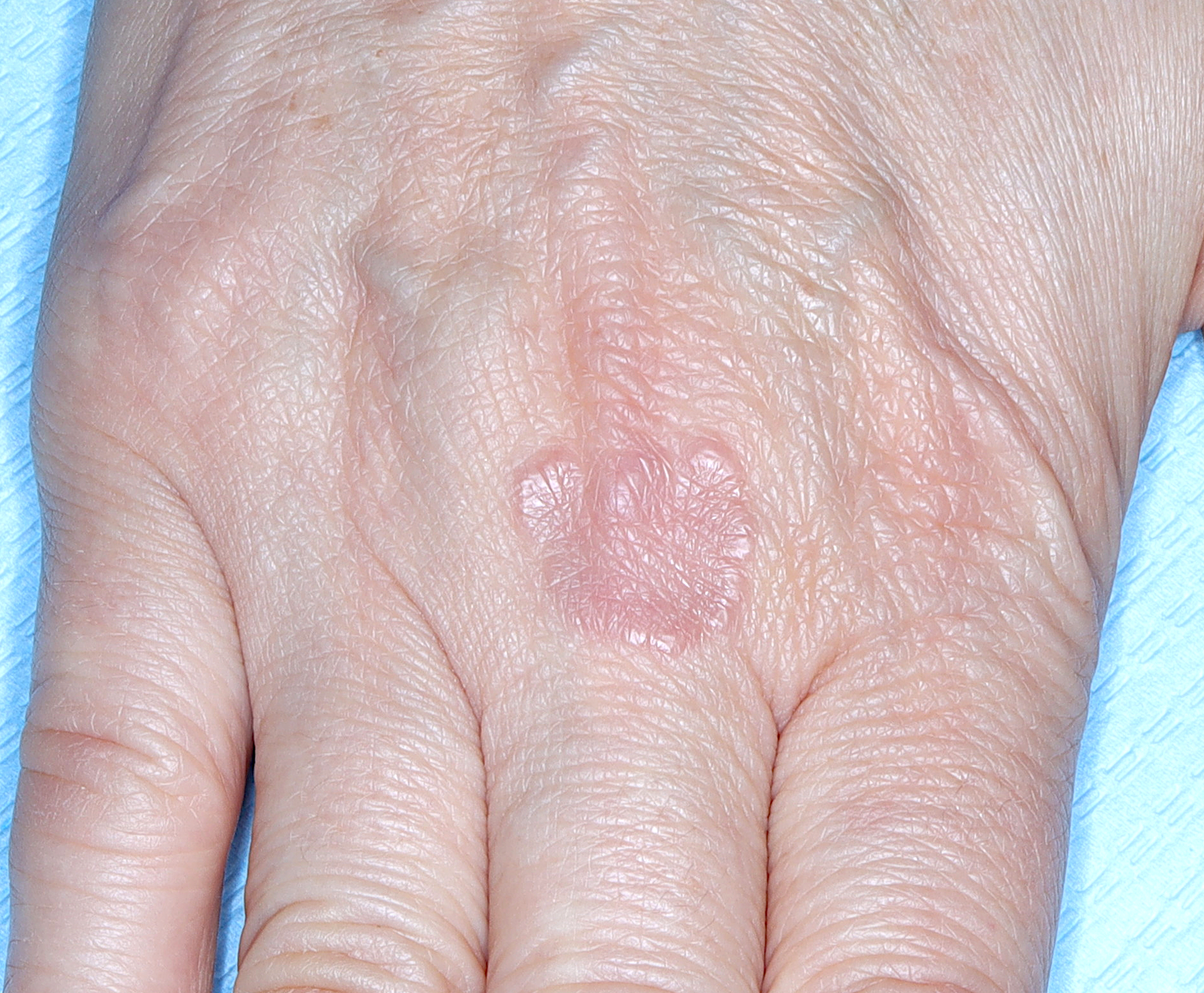 Ziarniniak obrączkowaty na grzbiecie dłoni.