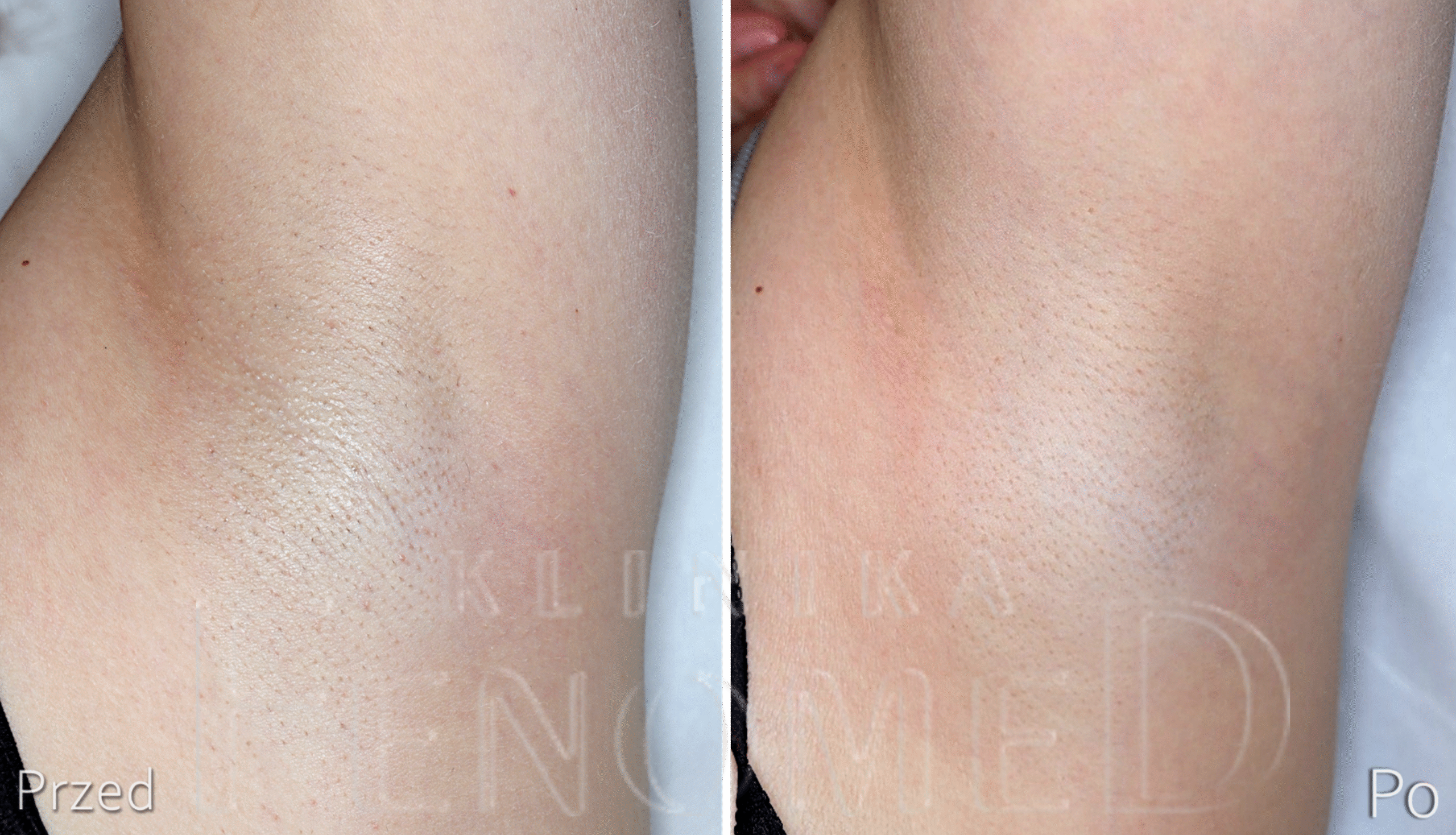 Efekt przed i po serii zabiegów depilacji laserowej pach
