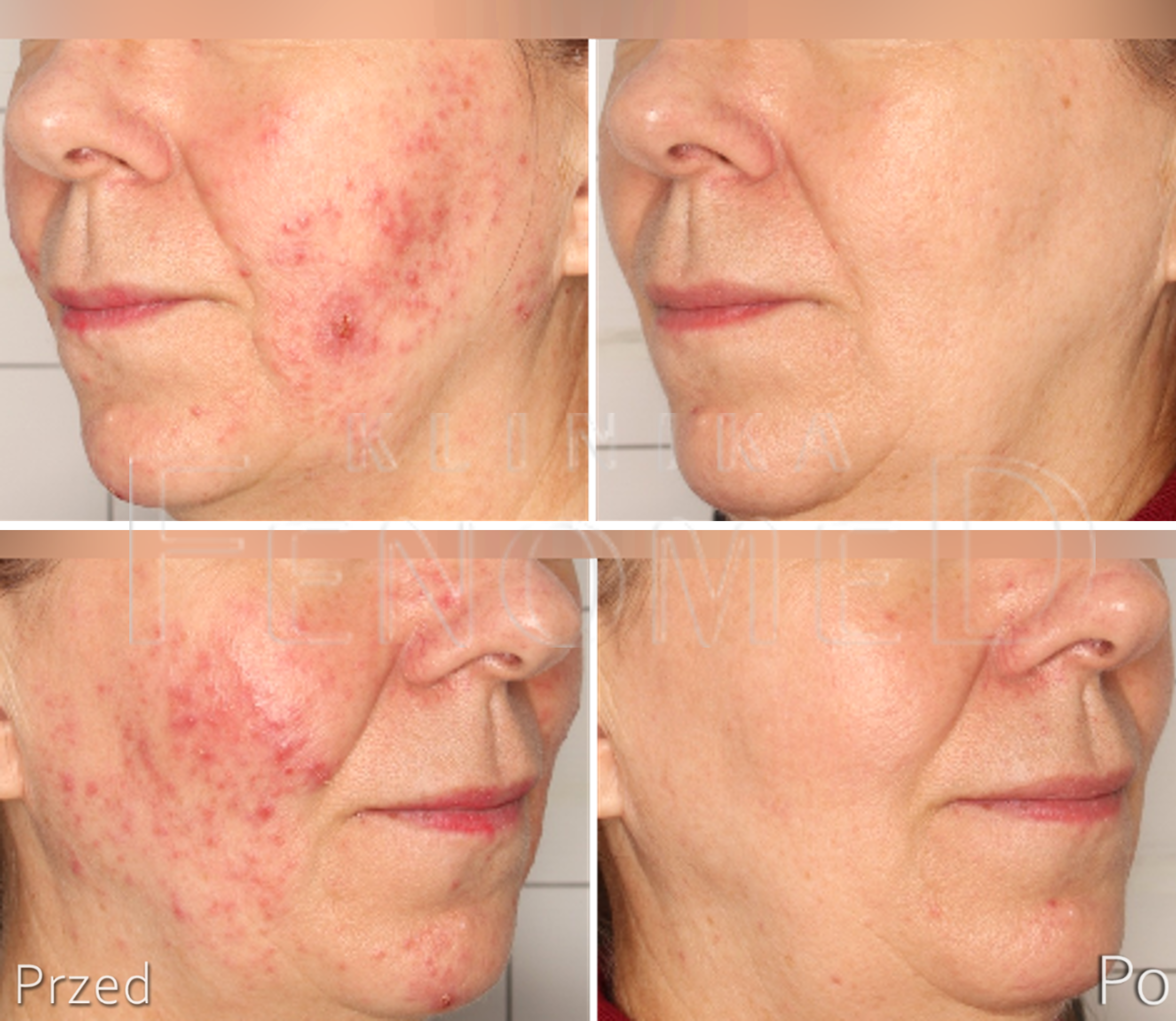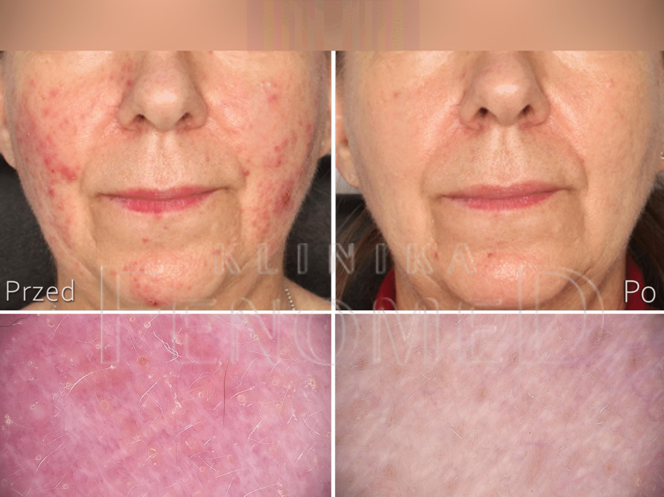 Przed i po terapii fotodynamicznej trądziku różowatego